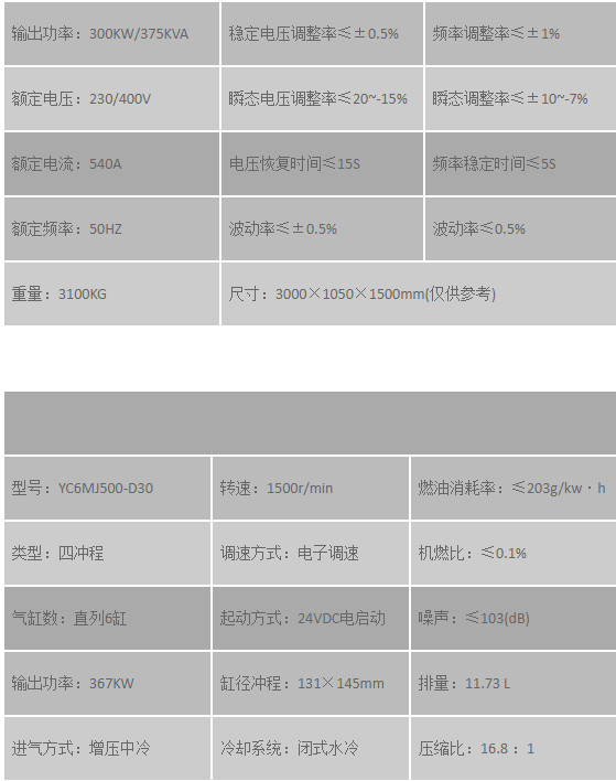 300kw發(fā)電機(jī)組參數(shù)